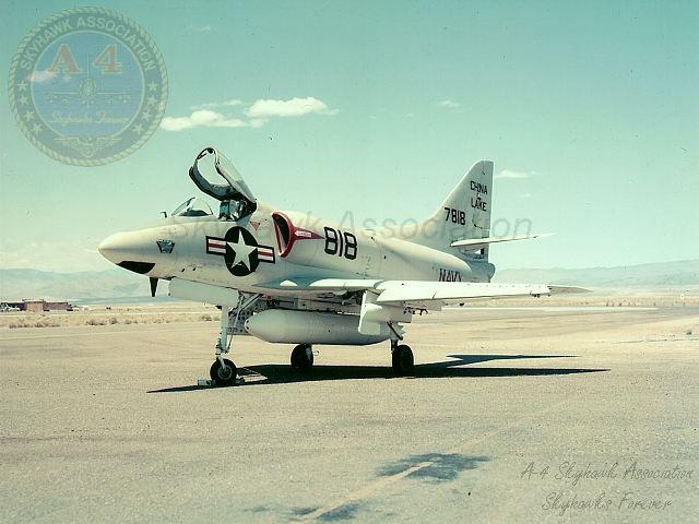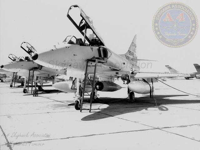 MAR79: China Lake Skyhawk BuNo 152101 parked on the hot line. Photo by P. Minert via Tailhook Association.