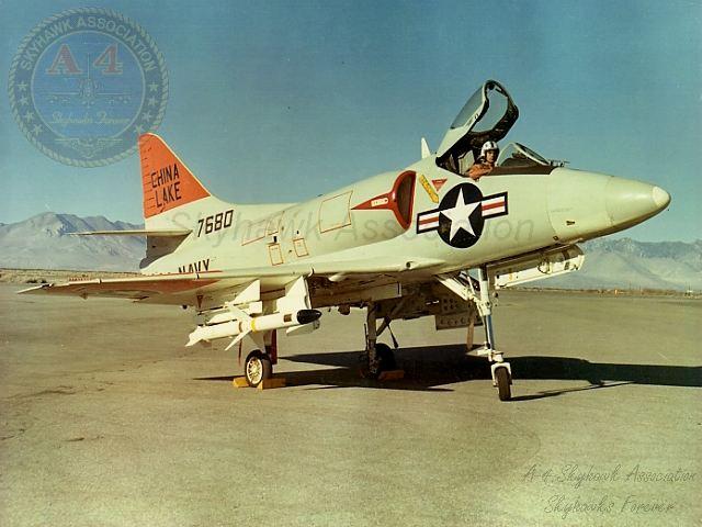 13MAR63: China Lake Skyhawk BuNo 147680 and Shrike test pilot LCDR Jack Sickel. Navy photo from J.A. Sickel Jr.