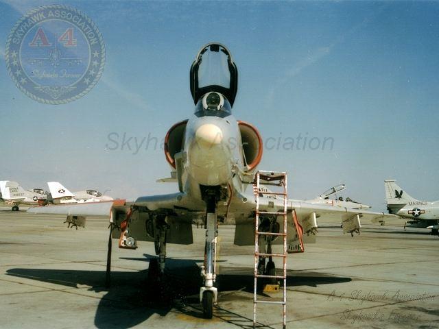 NOV89: NTA-4F Skyhawk BuNo 152102 parked on the ramp. B. Niedermeyer via Tailhook Association.