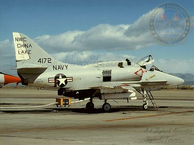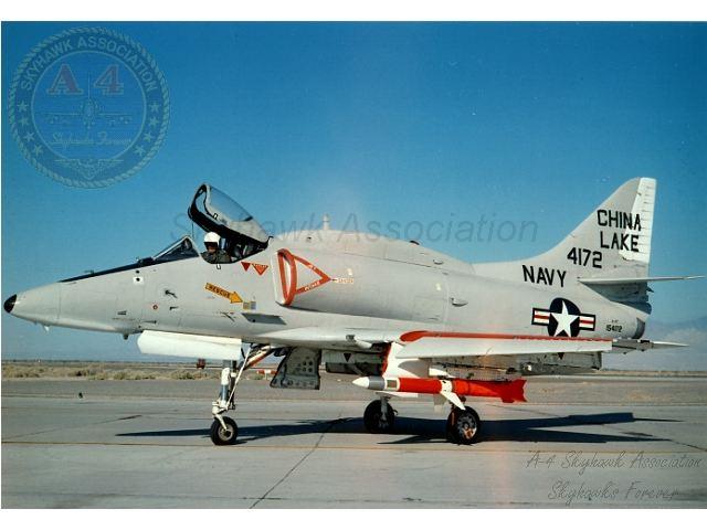 NWC: NWC China Lake TA-4F Skyhawk BuNo 154332 with HARM seeker nose in-flight. Official U.S. Navy, Gary Verver Collection