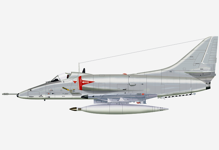 JUL 1963: Line drawing of China Lake A-4E Skyhawk BuNo 149969 as it looked in July 1963 operating from Key West for Project Rainhat. Rich Dann.