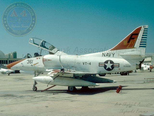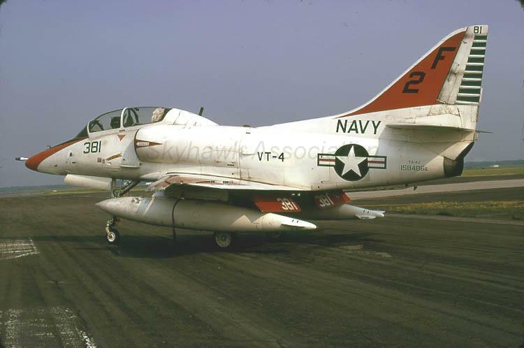November 1973: Training Squadron FOUR assigned the Douglas TA-4J Skyhawk to replace the Cougar. From 1973 to 1978, VT-4 provided summer jet orientation flights for midshipmen of the United States Naval Academy and the Naval Reserve Officers Training Corps.